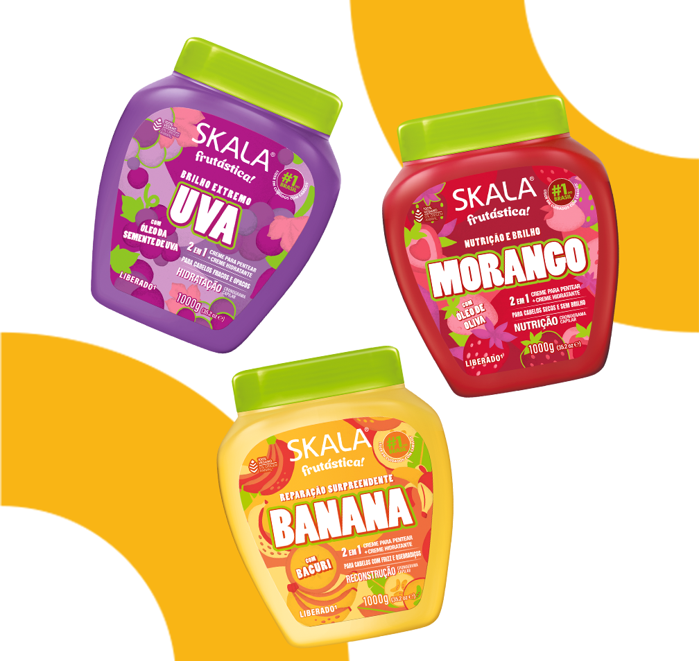 A linha Frutástica, composta por shampoos, condicionadores e cremes de tratamento nas versões Morango, Melancia, Coco, Uva e Banana, trouxe ao mercado uma proposta vibrante, divertida e cheia de personalidade, traduzindo a essência da marca Skala: acessível, leve e próxima do seu público.